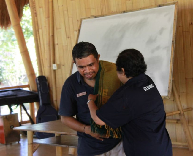 Penyerahan Cindra Mata oleh kepala SMK Bakti Luhur